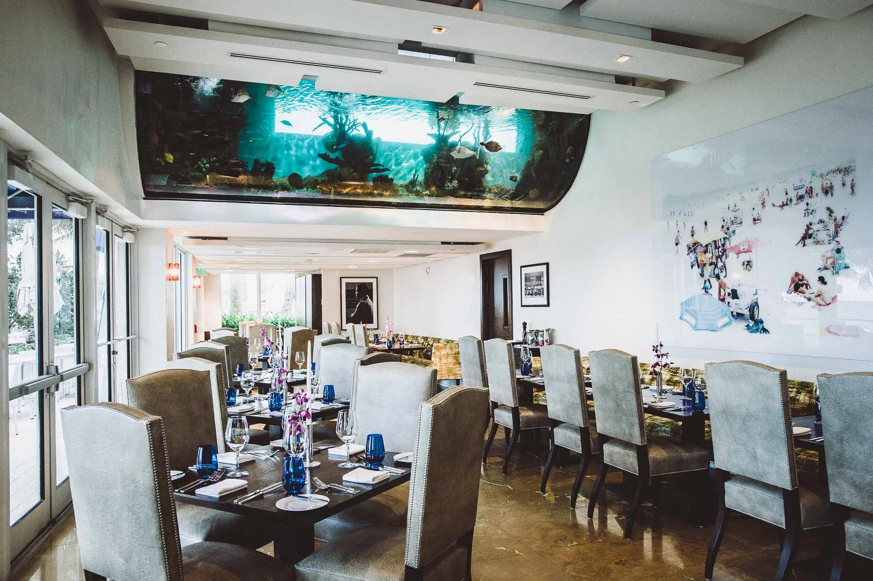 Perhaps most notable is the grand, 1,500-gallon saltwater aquarium festooning the restaurant’s ceiling. Sure, aquariums are common in restaurants. But ceiling aquariums? Perhaps even more impressive is the aquarium’s extension outside to the Royal Blue's pool, where diners view a colorful variety of tropical fish while taking an afternoon dip. This whole new breed of art allows vacationers to stay connected to the tranquility of the sea without donning a snorkel.